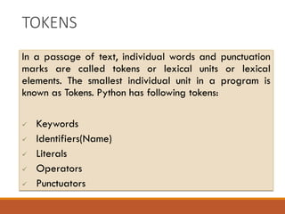 CH-3 FEATURES OF PYTHON, data types token | PPTX