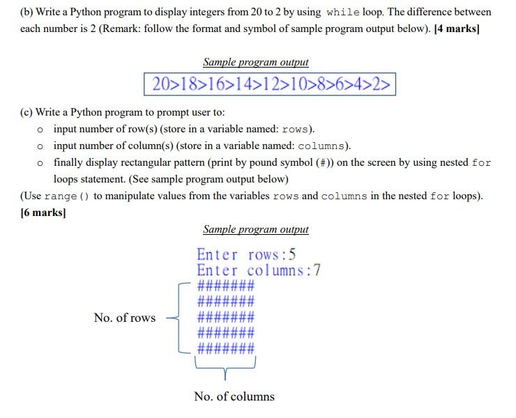 Solved (b) Write a Python program to display integers from | Chegg.com