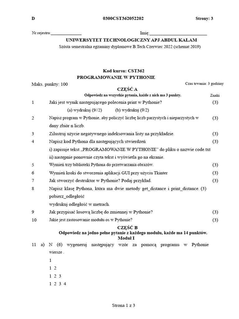 Previous Question Paper CST362-A | PDF | Python (Programming Language ...