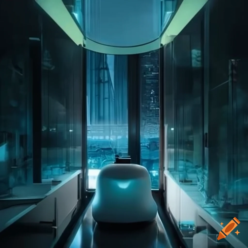 Robotic hotel immersed in code 0101 and nature on Craiyon