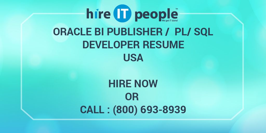 Oracle BI Publisher / PL/SQL Developer Resume - Hire IT People - We get ...