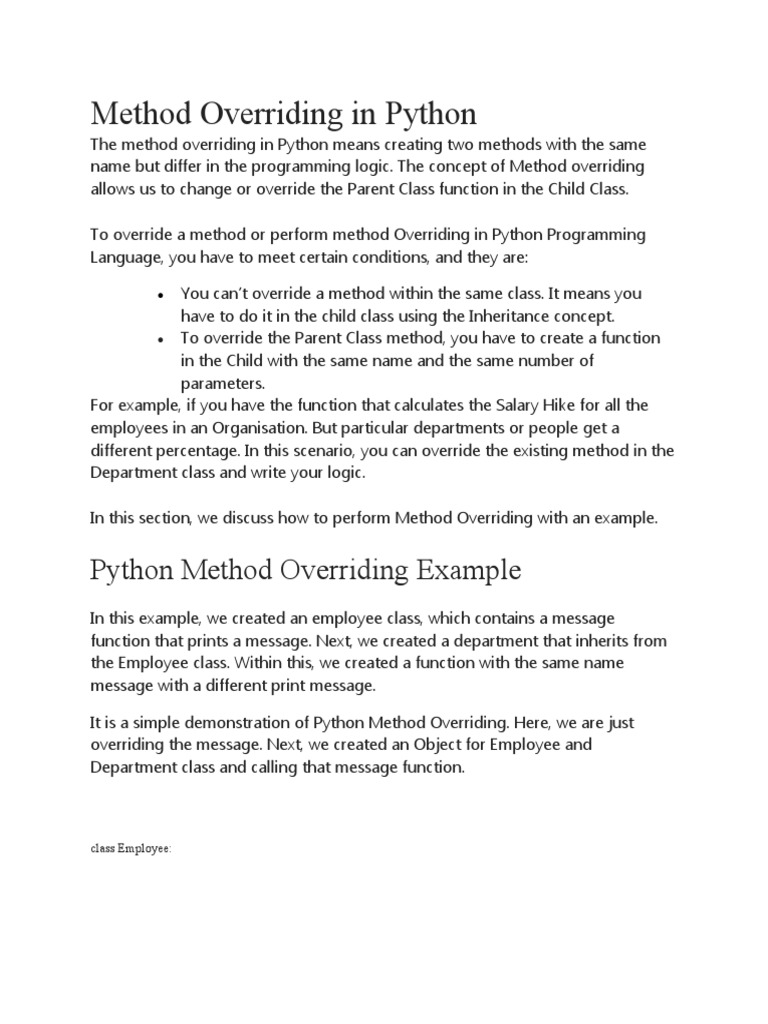 Method Overriding in Python | PDF | Method (Computer Programming ...