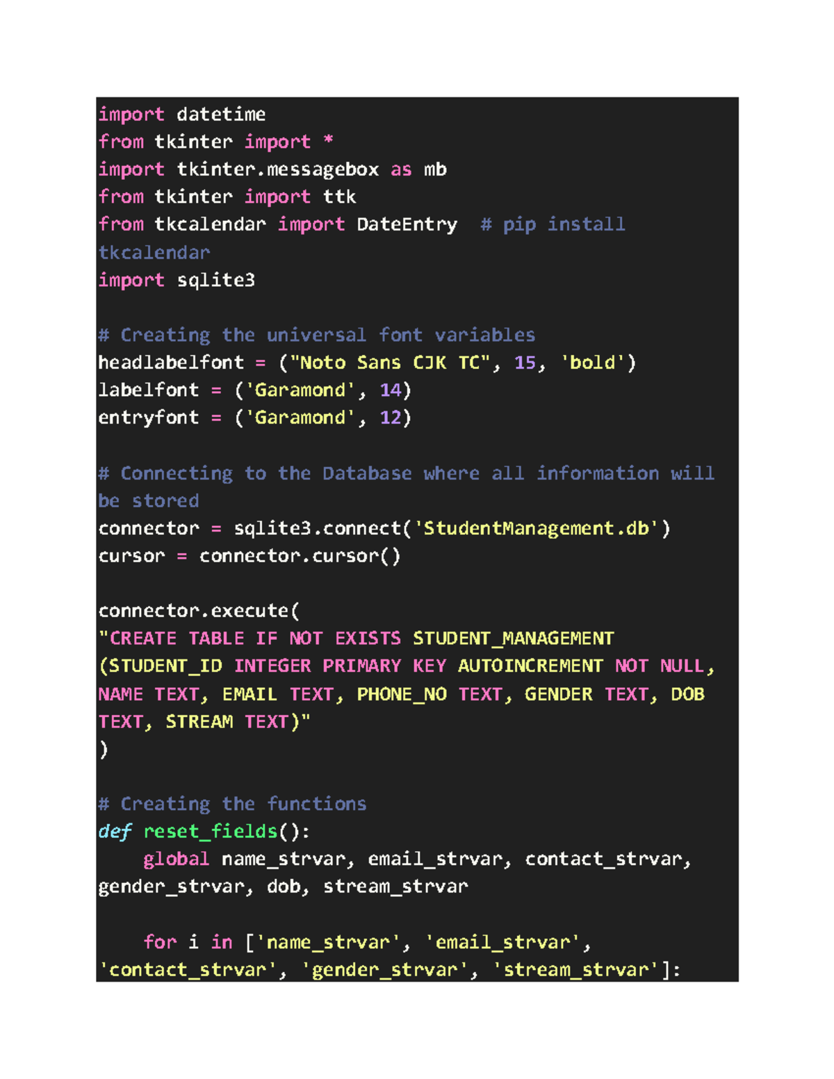 STUDENT MANAGEMENT SYSTEM PROJECT: Python & MySQL Code - Studocu