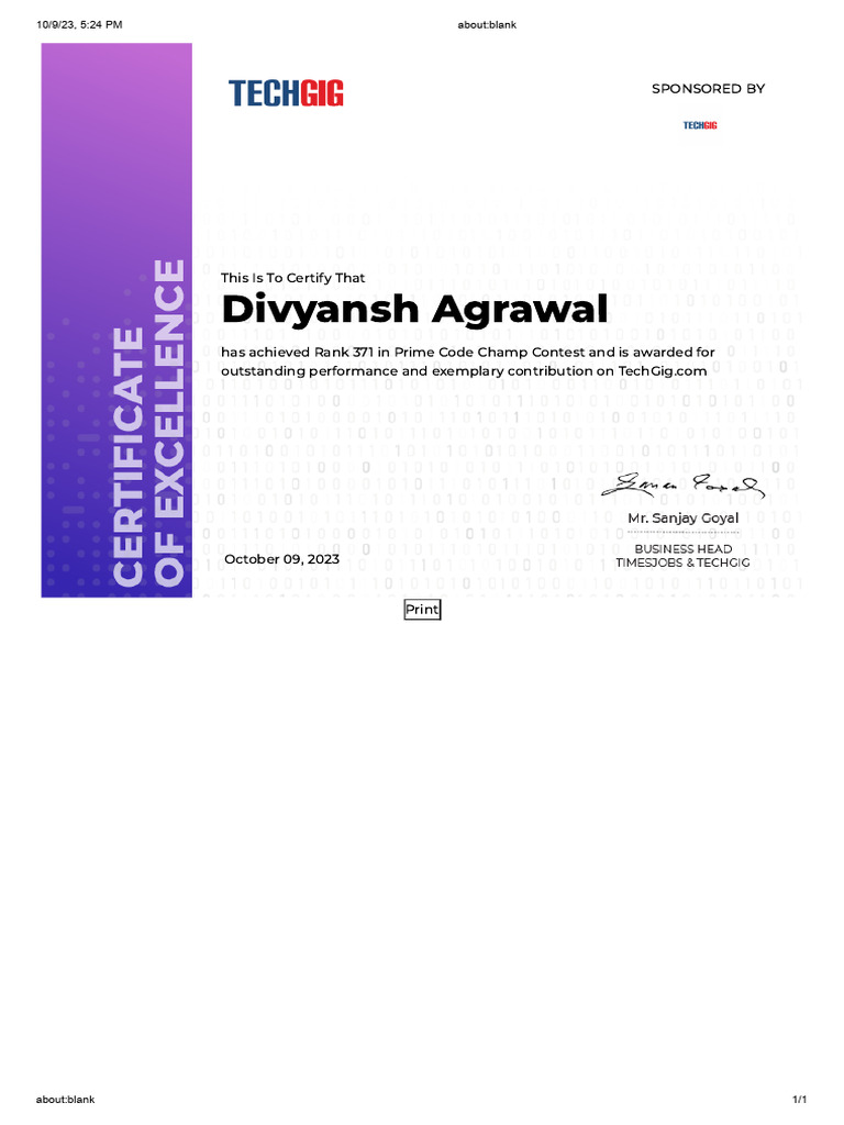 Techgig Certificate | PDF