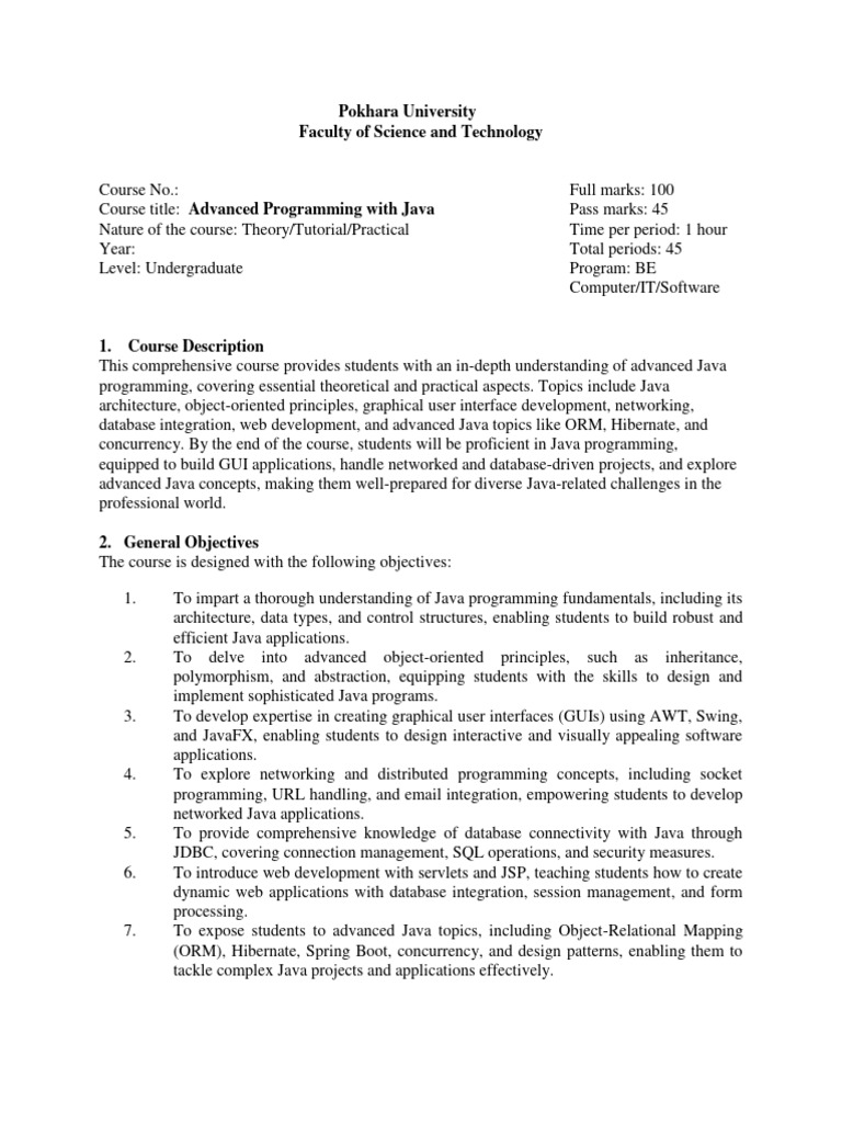 Course Description Document Advanced Java CSF206 AY 2022 23 | PDF ...