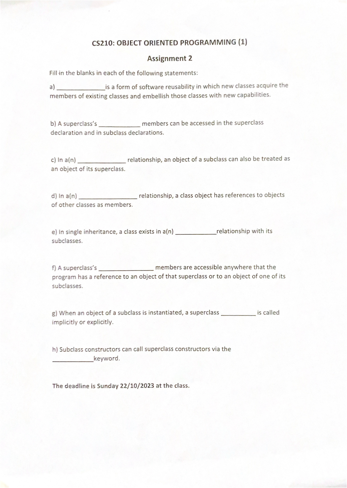 Assignment oop - fundmental of networks - Studocu
