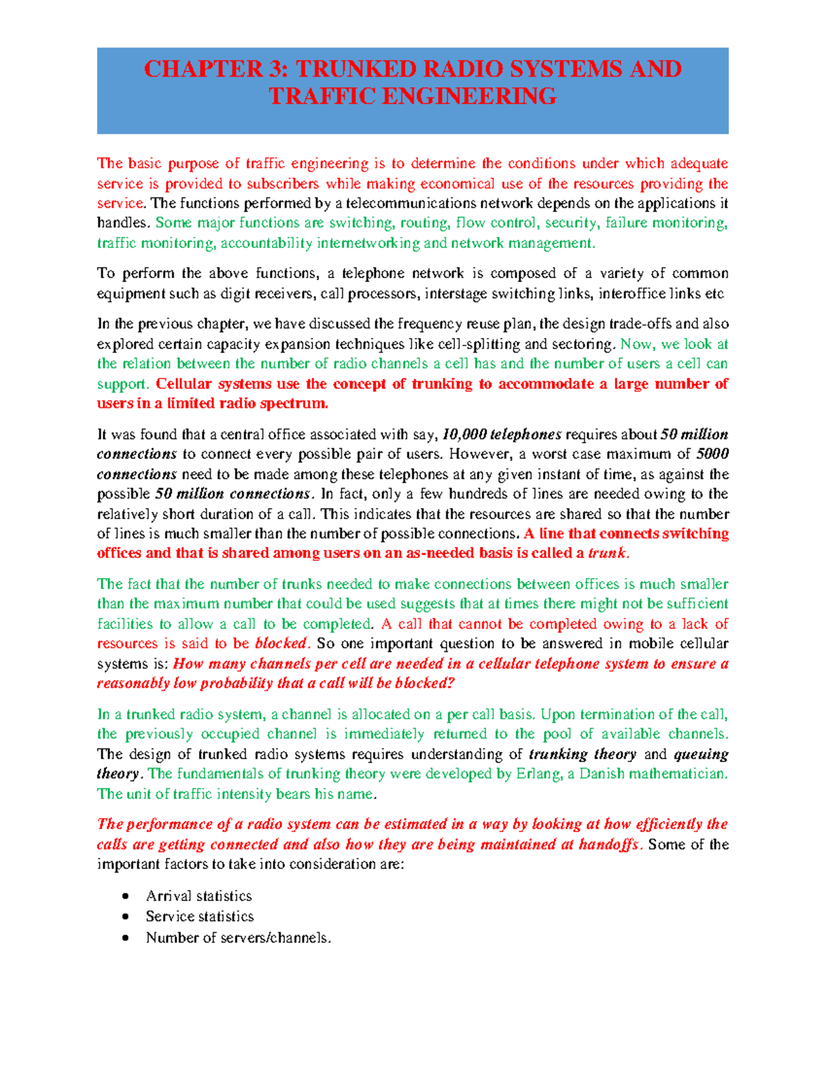 Mobile Networks Chapter 3 - TRAFFIC ENGINEERING The basic purpose of ...
