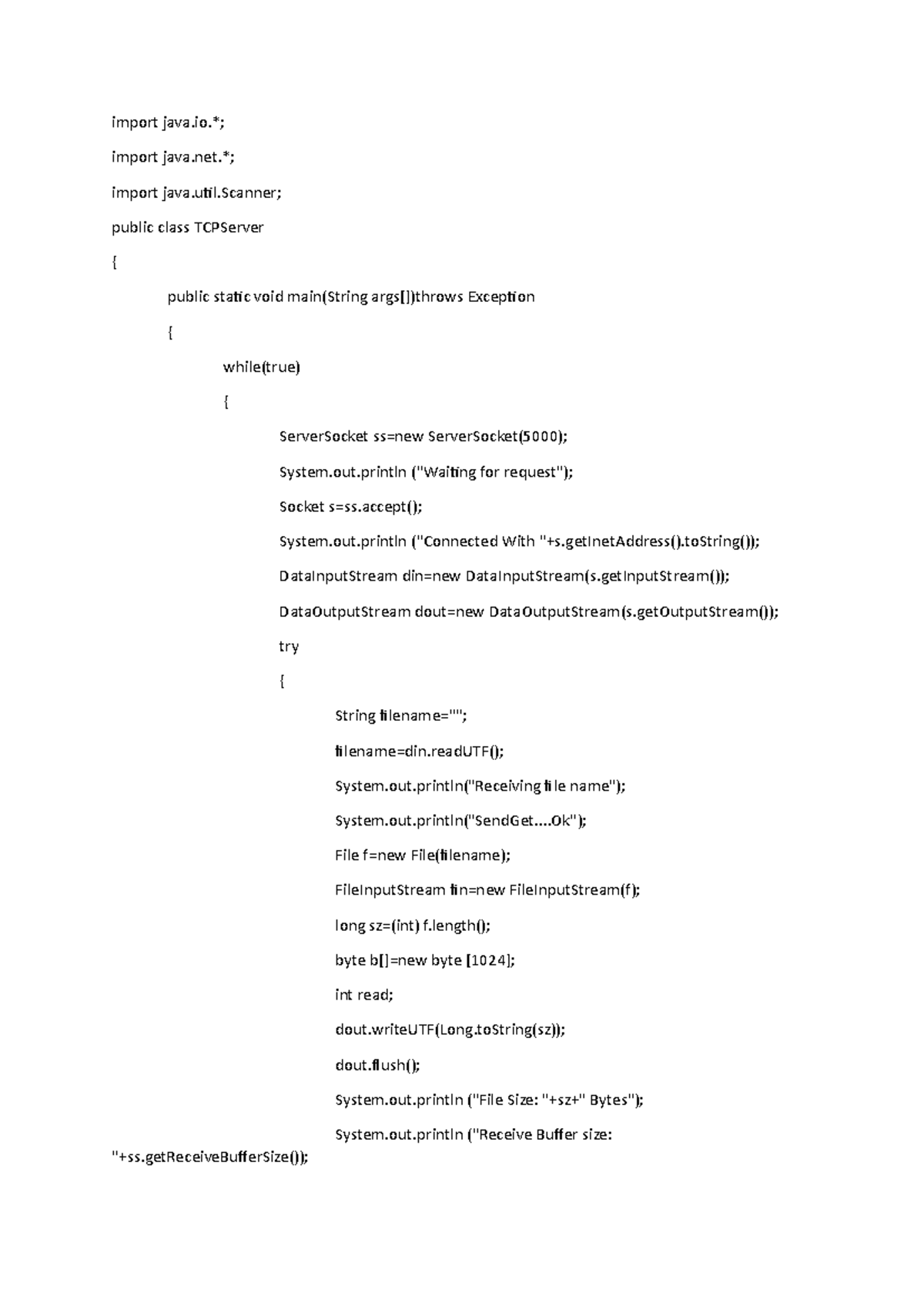 TCP - COMPUTER NETWORKS LAB - import java.; import java.; import java ...