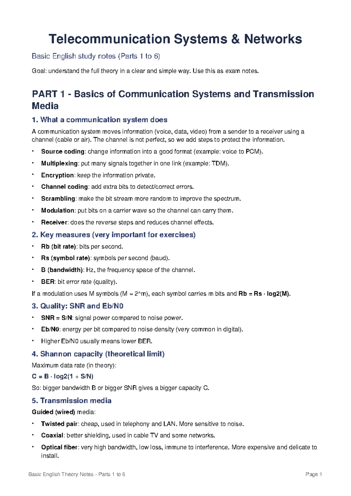 Telecommunication Systems Networks: Basic English Study Notes (Parts 1 ...