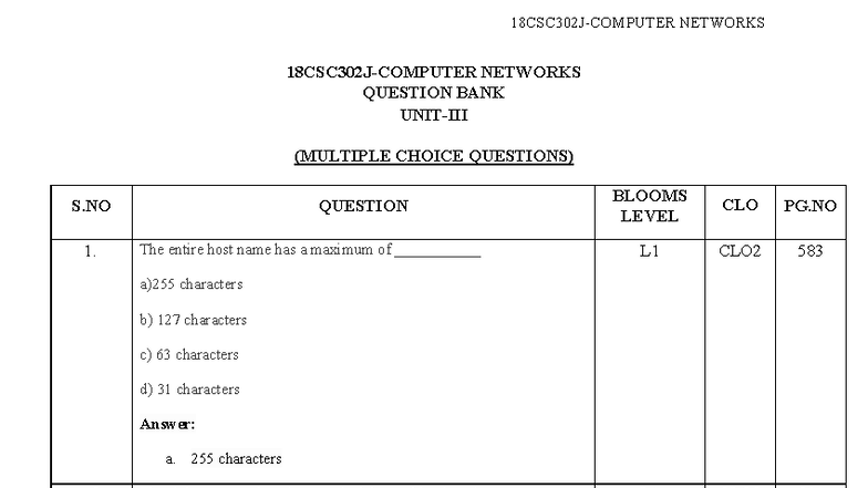 Updated CN QB UNIT 3 - Networks Multiple Choice Questions - Studocu