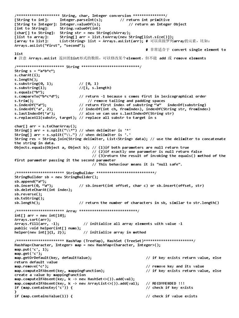 LeetCode Java Cheat Sheet For Interview | PDF | String (Computer ...