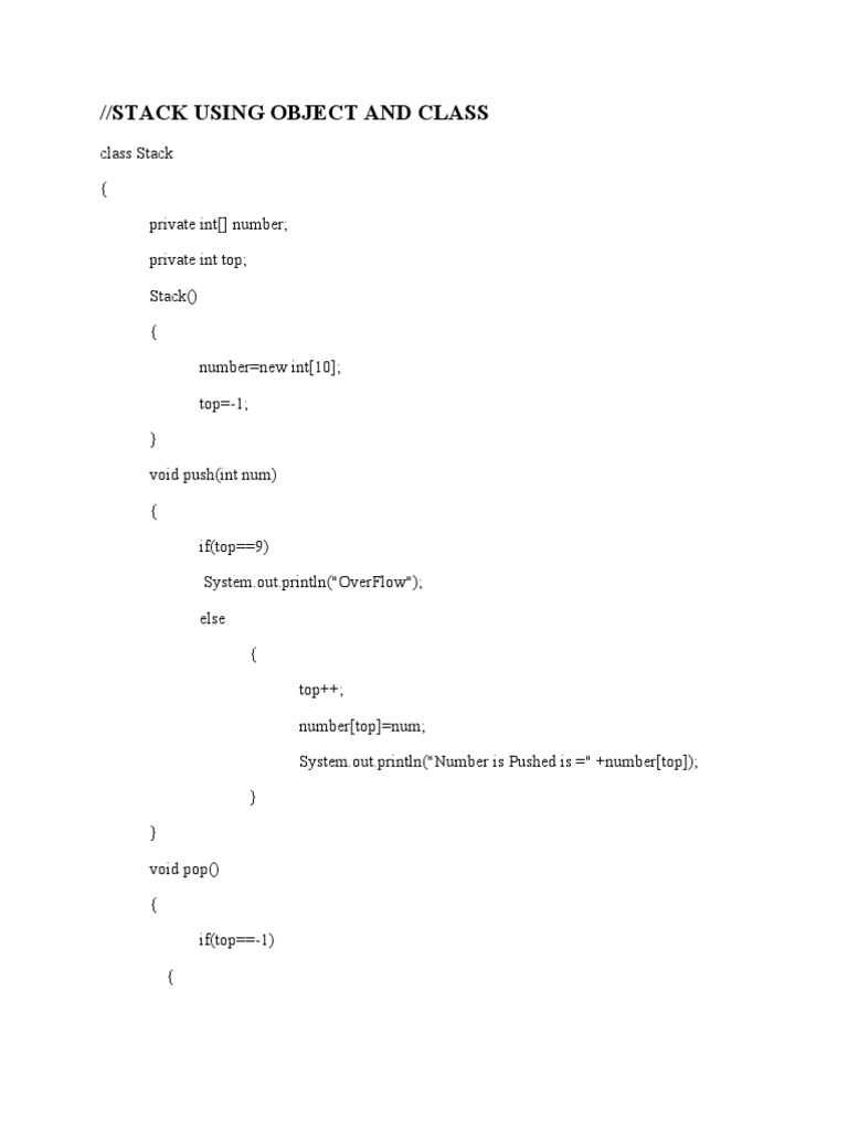 Implementation Of Stack Using Array Program Practical No:3: 1)