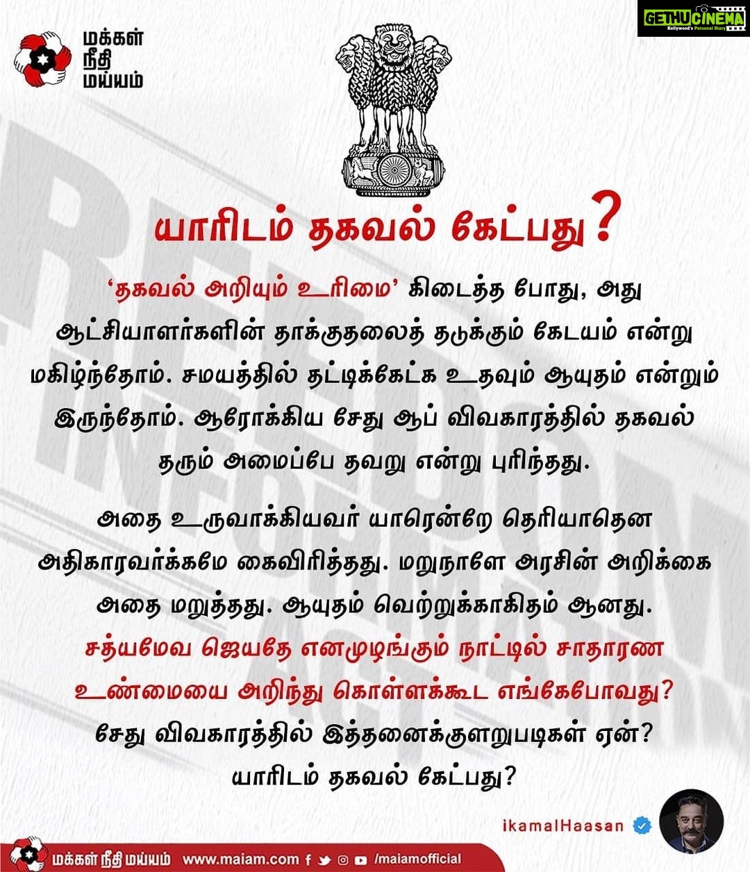 Kamal Haasan Instagram – ‘தகவல் அறியும் உரிமை’ கிடைத்த போது, அது ...