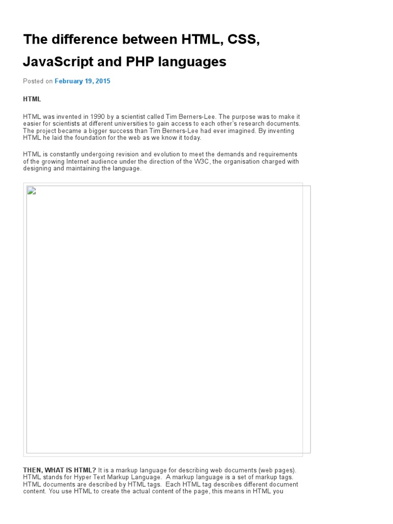 The Difference Between HTML, CSS, JavaScript and PHP Languages PDF ...