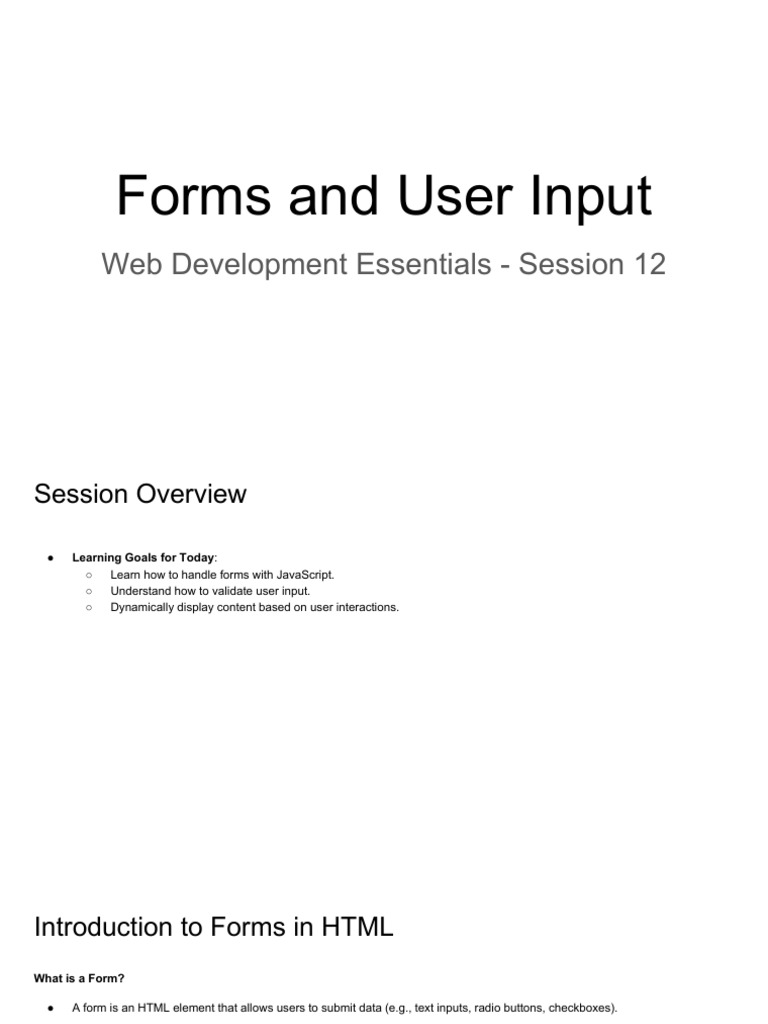 Session 12 Forms and User Input | PDF | Html | World Wide Web