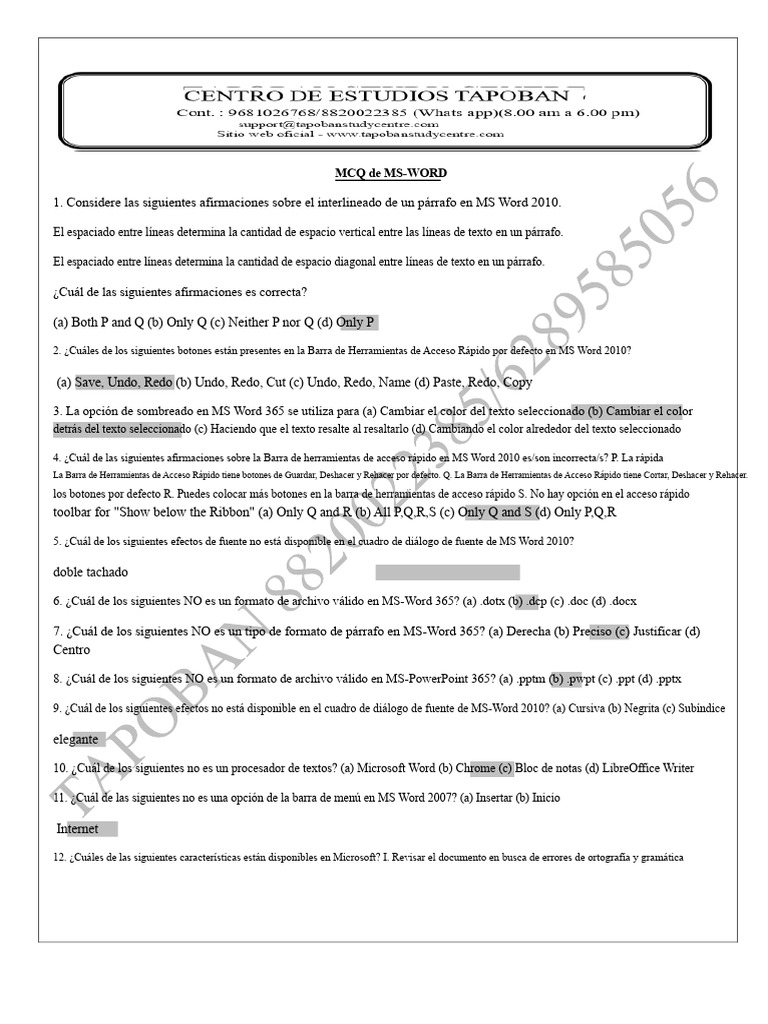 MS Word MCQ | PDF | Microsoft Word | Typography