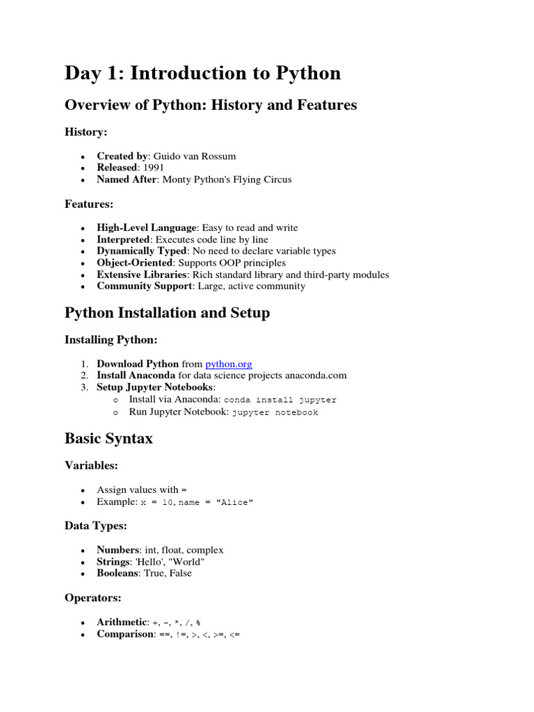 Day 1 Introduction to python | PDF | Python (Programming Language ...