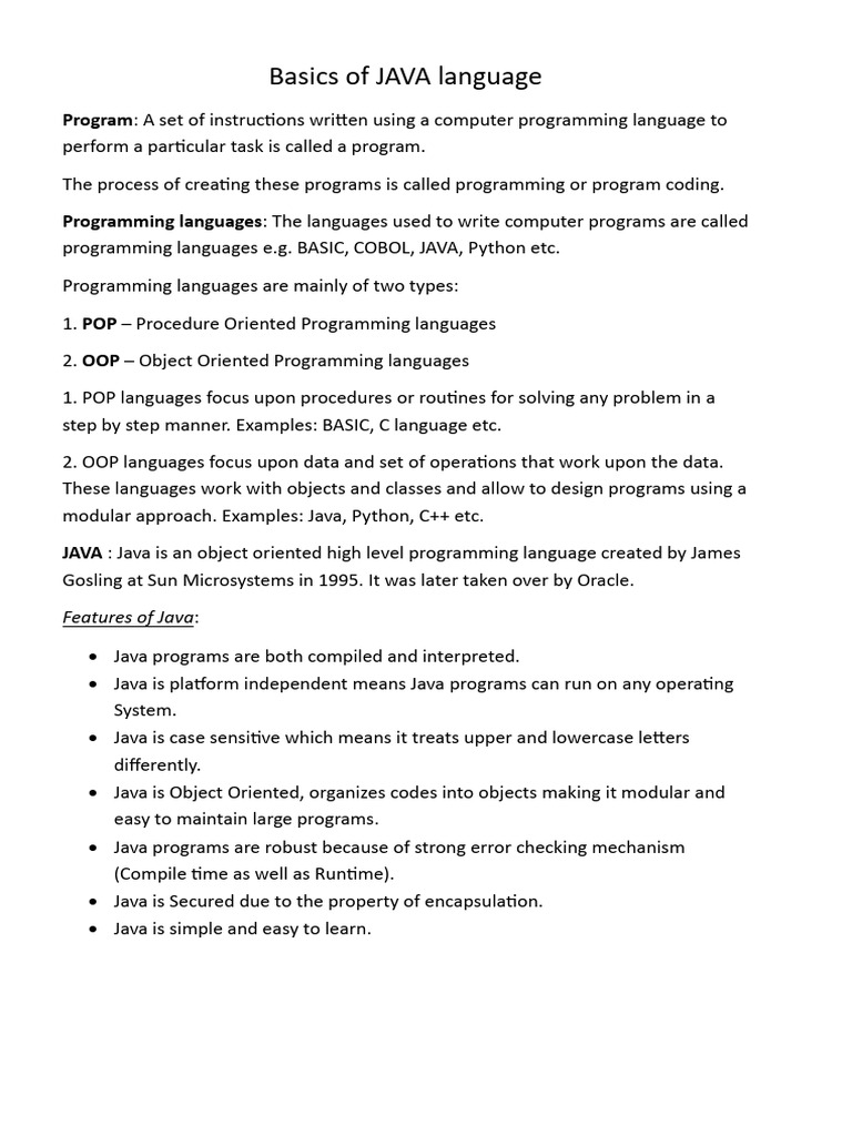 Class XII Java Programming Fundamentals Notes Overview - Studocu