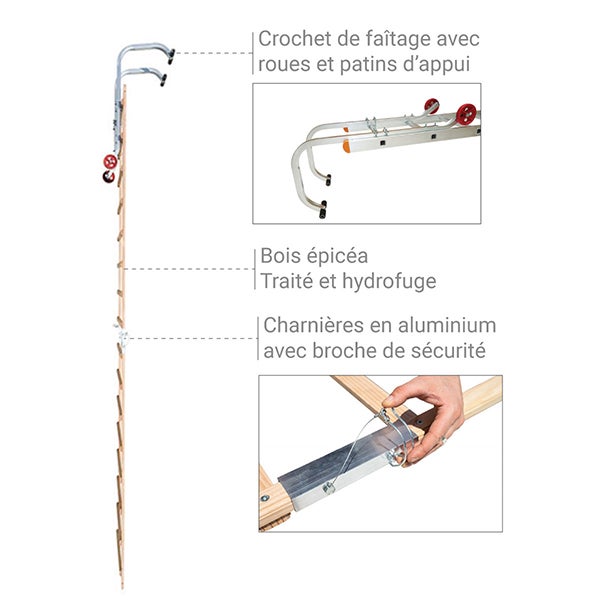 Echelle de toit bois 4x2.00m avec crochet de faîtage - 1232-001-CR ...
