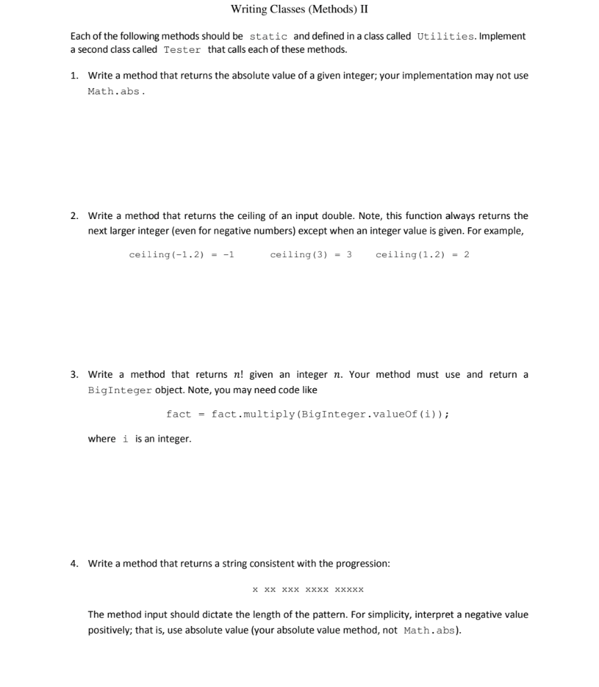 Solved Writing Classes (Methods) II Each of the following | Chegg.com
