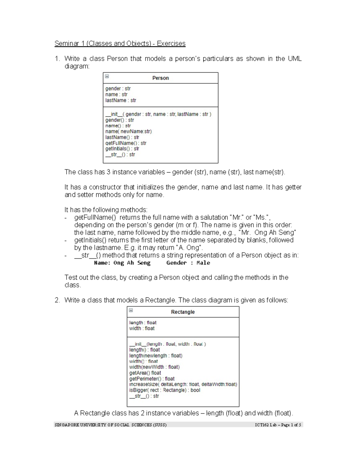 Lab 1 v2 - NOTES - Seminar 1 (Classes and Objects) - Exercises Write a ...