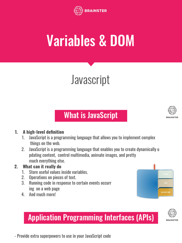 Based on this image's title: “Javascript - Variables and DOM | PDF | Document Object Model | Java Script”