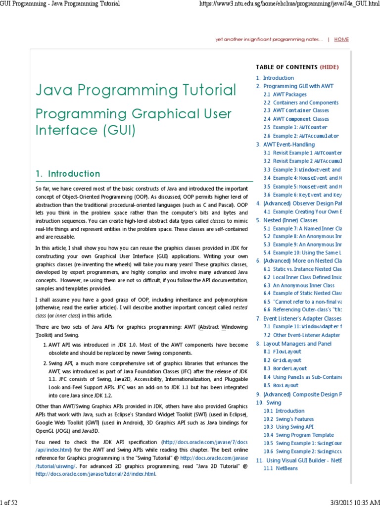 Introduction To: JAVA GUI Programming | PDF | Graphical User Interfaces ...