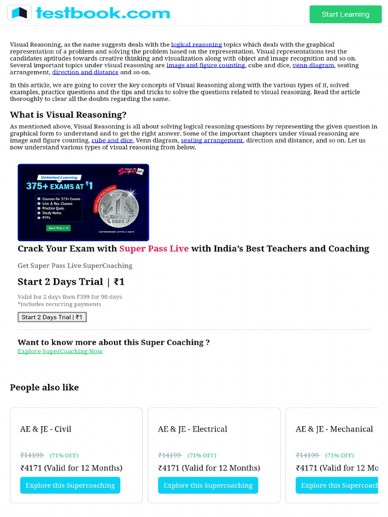 Visual Reasoning - Learn Key Concepts With Solved Examples Here | PDF
