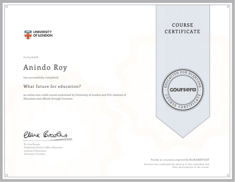 Coursera Certificate of Completion Sample | PDF