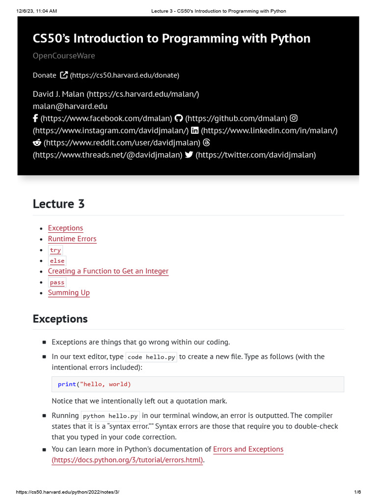 CS50 Python Course: Introductory Notes | PDF | Parameter (Computer ...