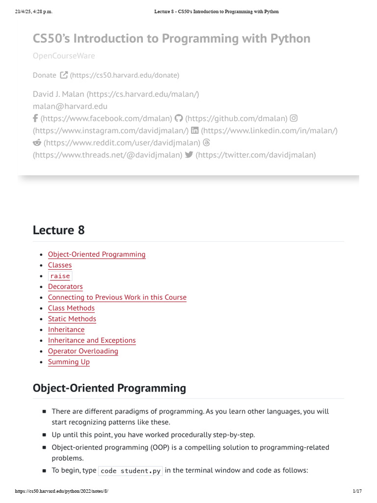 Lecture 8 - CS50's Introduction To Programming With Python | PDF ...