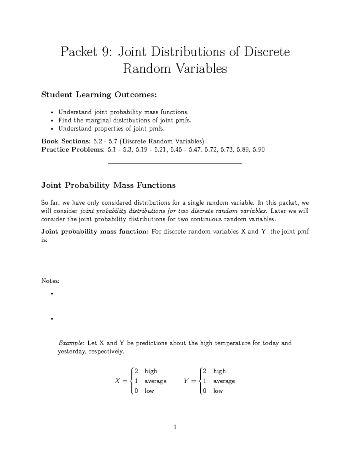 Packet 9 class - Lecture notes 9 - Packet 9: Joint Distributions of ...