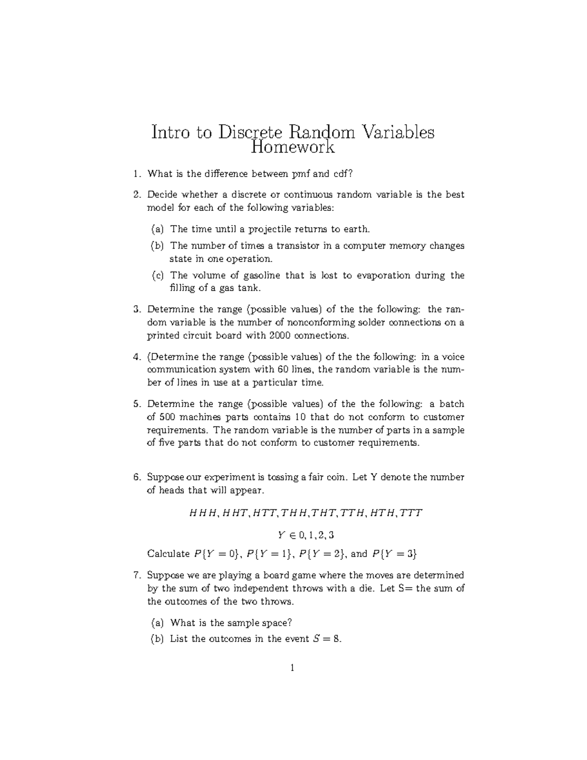 HW Intro to Discrete Random Variables - Intro to Discrete Random ...