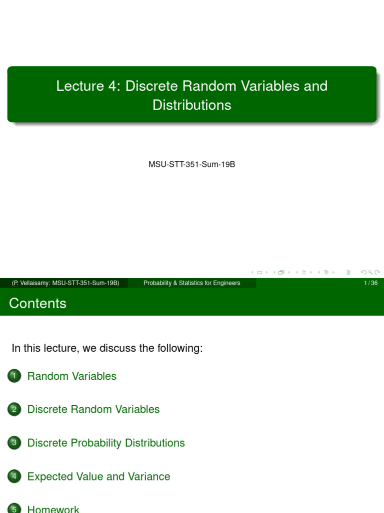 Lecture 4: Discrete Random Variables and Distributions: MSU-STT-351-Sum ...
