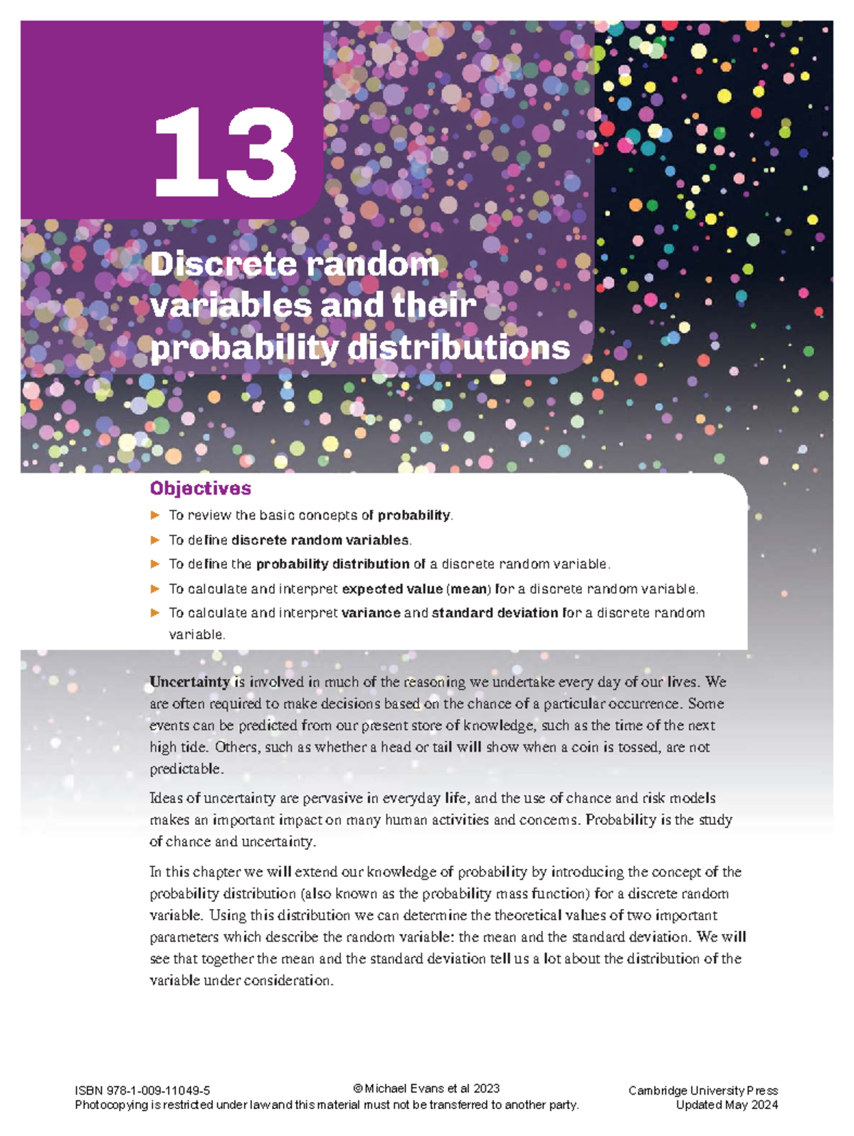 Chapter 13: Discrete Random Variables & Probability Distributions - Studocu