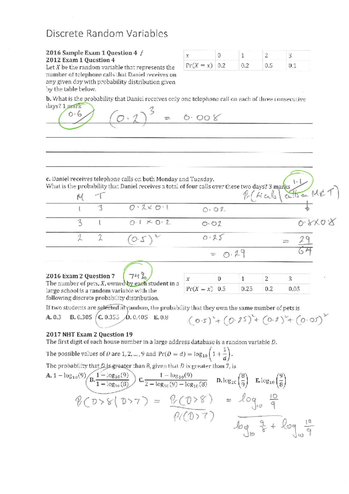 VCAA Discrete Random Variables Solutions 2016 Exam Questions - Studocu