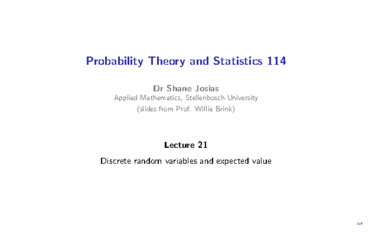 Probability theory and statistics 114: Lecture 21 on discrete random ...