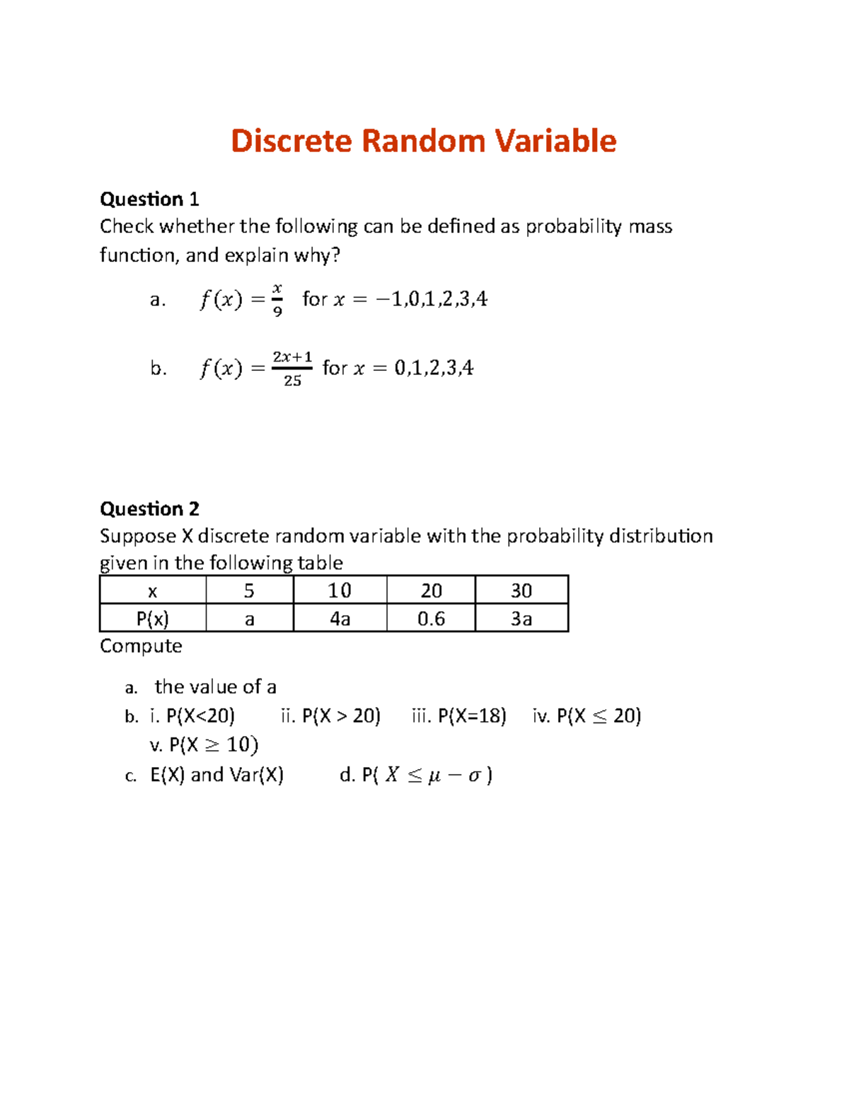 Topic 1- discrete random variable - STA466 MATHEMATICAL STATISTICS 1 ...