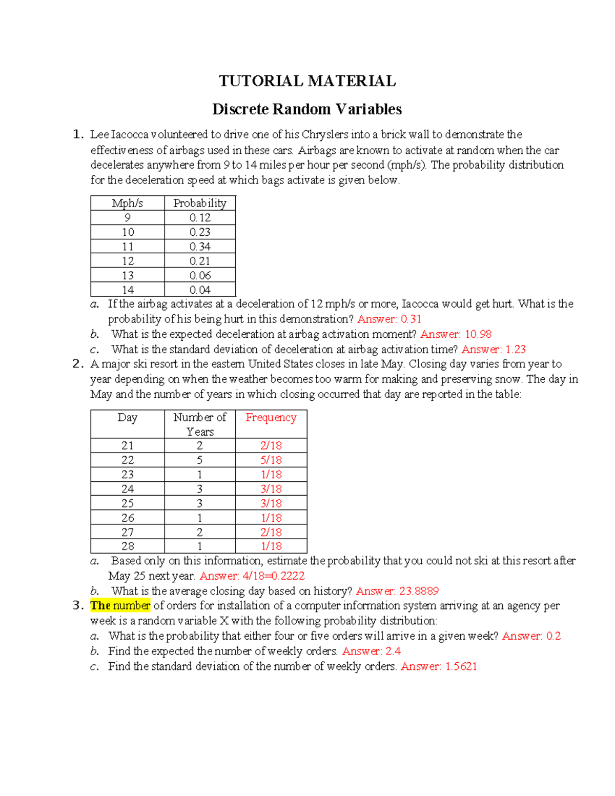 **ISE 03 Discrete Random Variables: Comprehensive Solutions and ...