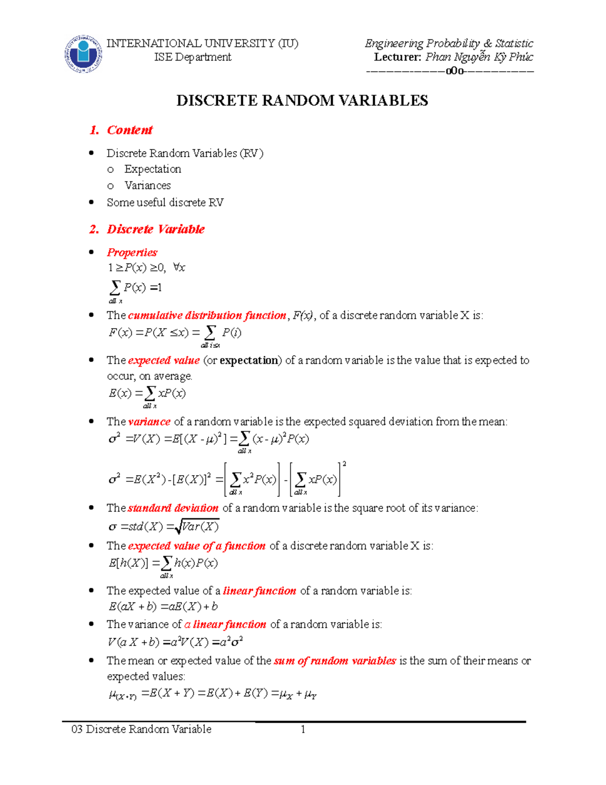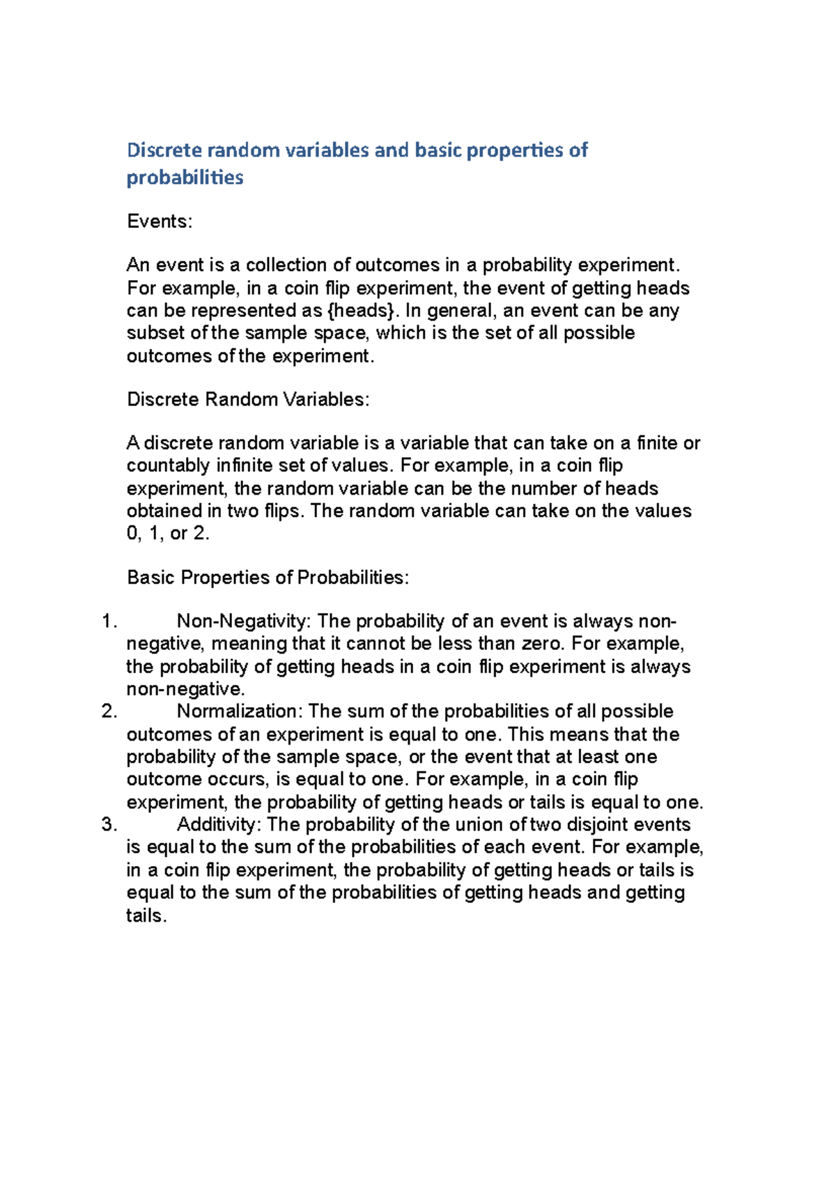 Discrete Random Variables & Basic Probability Properties - Studocu