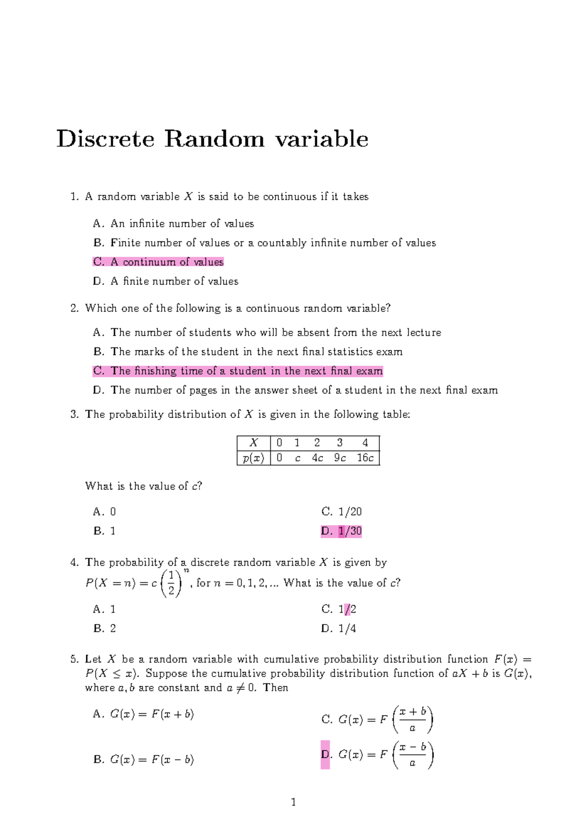 Discrete Random Variables: Examples and Calculations (Course Code ...