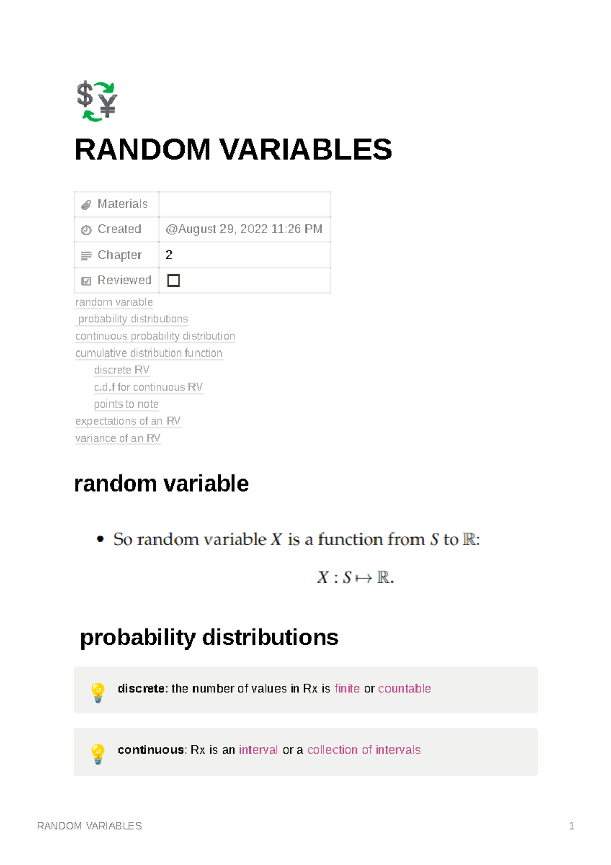 Random Variables - notes - RANDOM VARIABLES Materials Created Chapter 2 ...