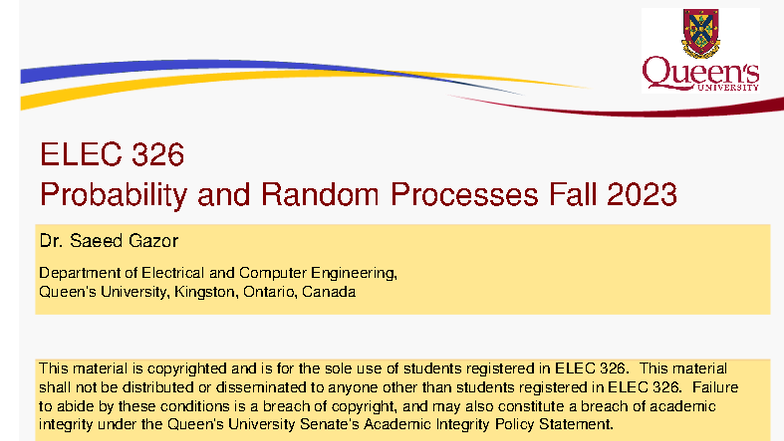 ELEC 326 Module 2 Notes: Discrete & Continuous Random Variables - Studocu