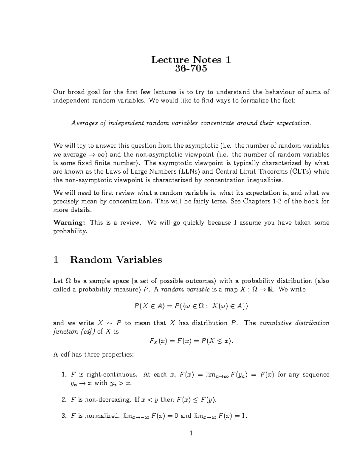 Lecture Notes 1: Understanding Random Variables and Their Expectations ...