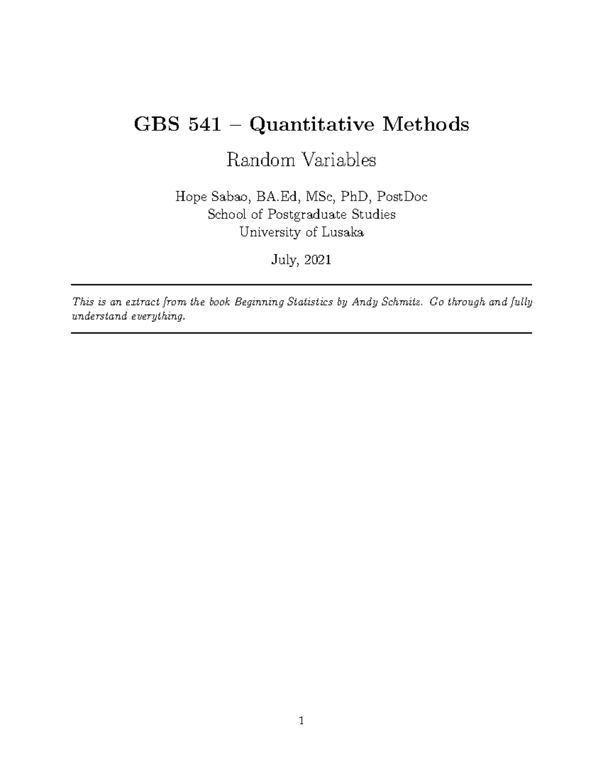 GBS 541 - Lecture Notes on Discrete Random Variables - Studocu