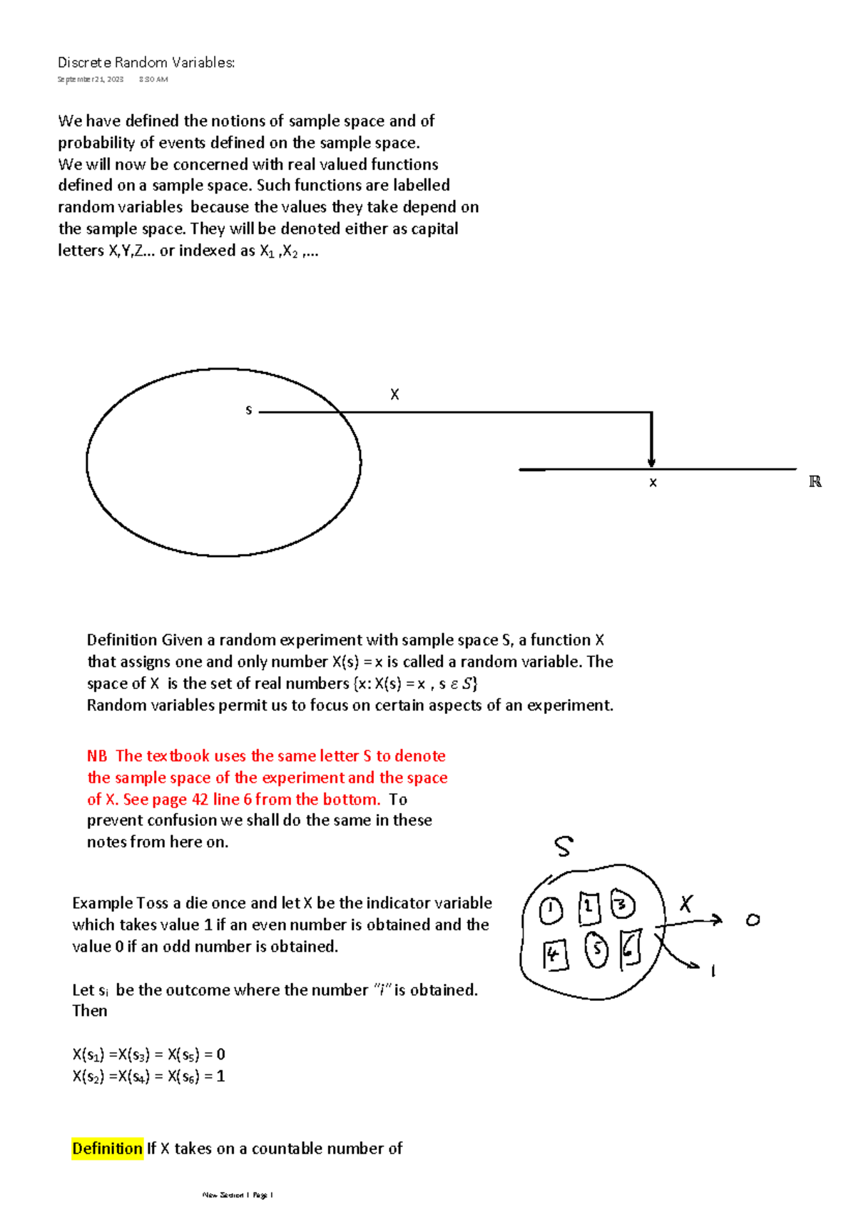 Notes - jkkn - Discrete Random Variables Random Variable Definition 1 ...