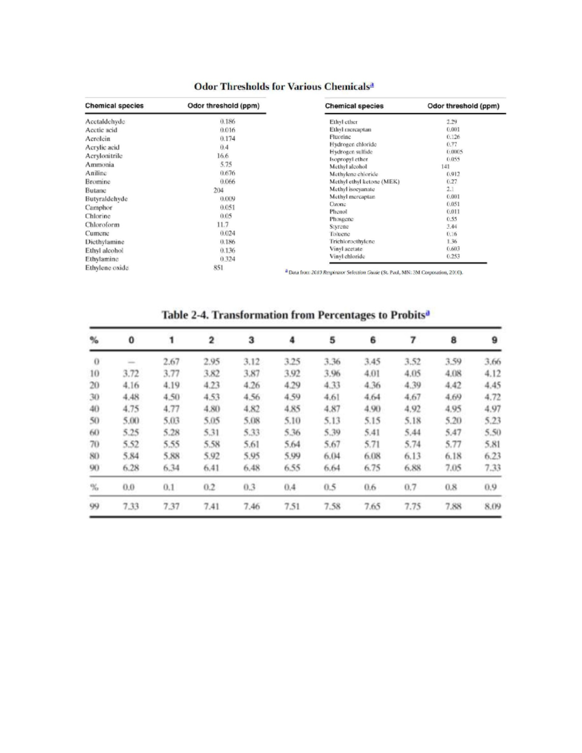 Safety tables - Pivot Values - Odor Thresholds for Various Chemicals ...
