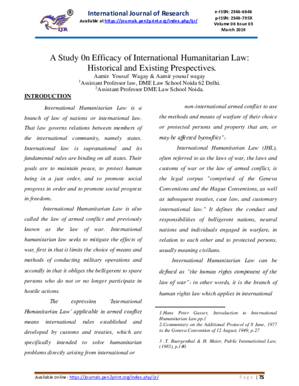 (PDF) A Study 0n Efficacy of International Humanitarian Law: Historical ...