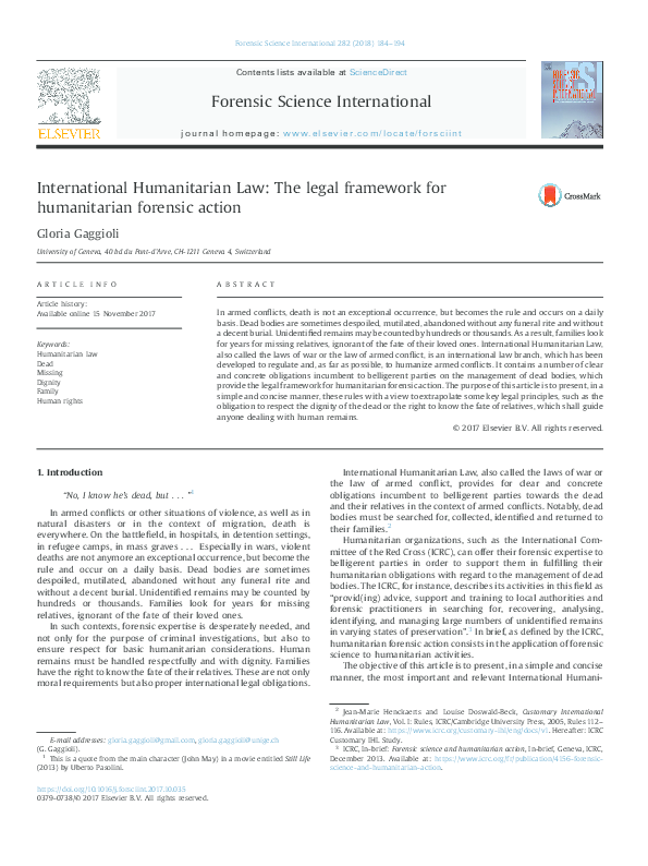 (PDF) International Humanitarian Law: The Legal framework for ...