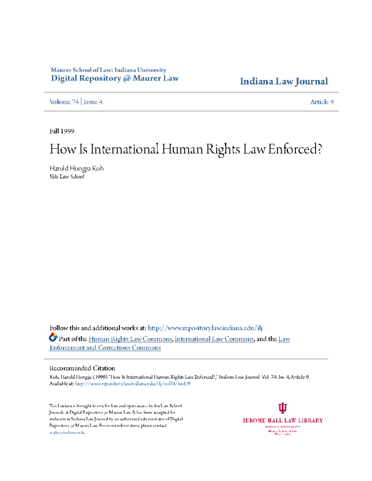 How Is International Human Rights Law Enforced - Indiana Law Journal ...